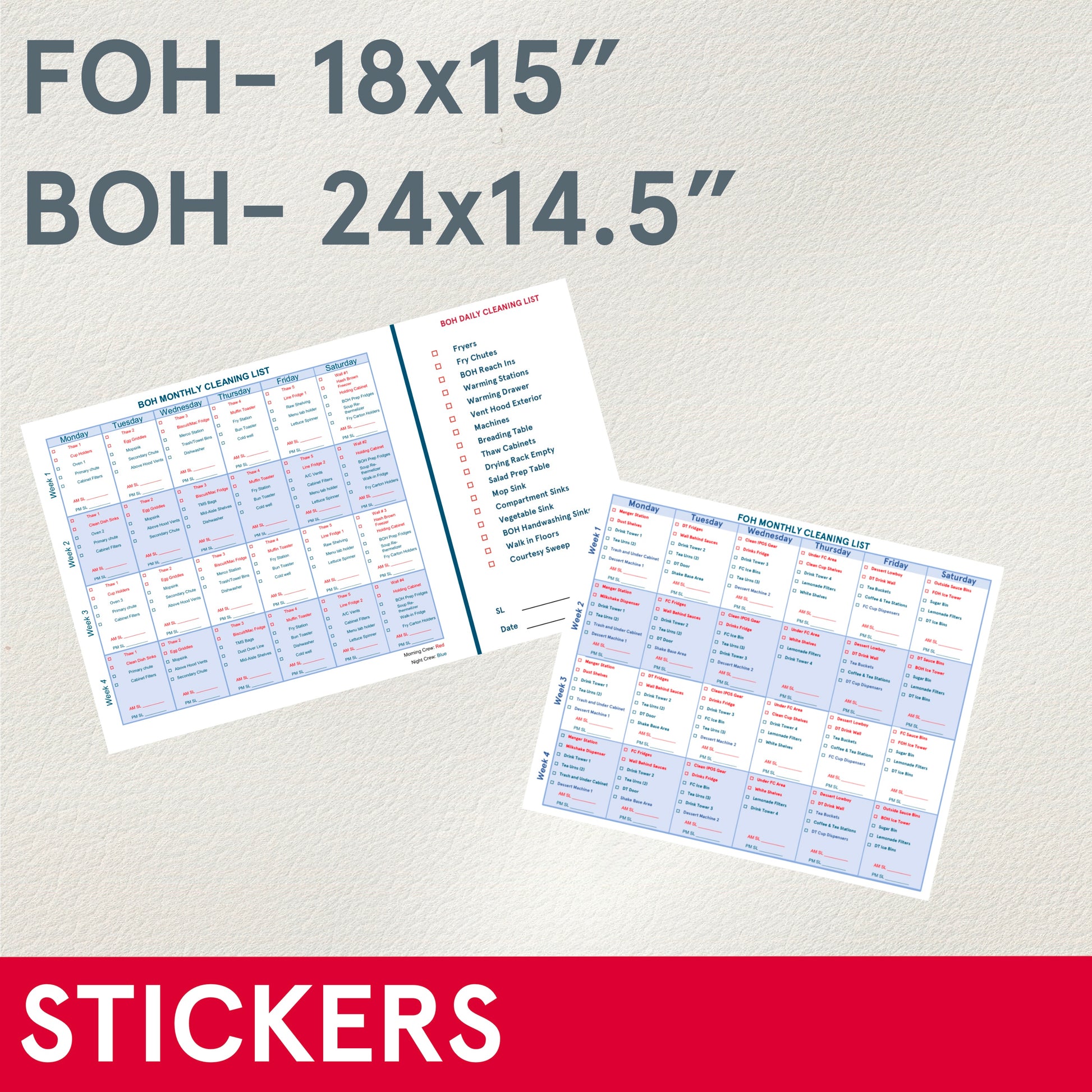 *STICKERS (Functional) FOH &/or BOH Cleaning Lists